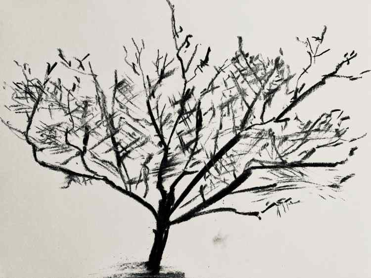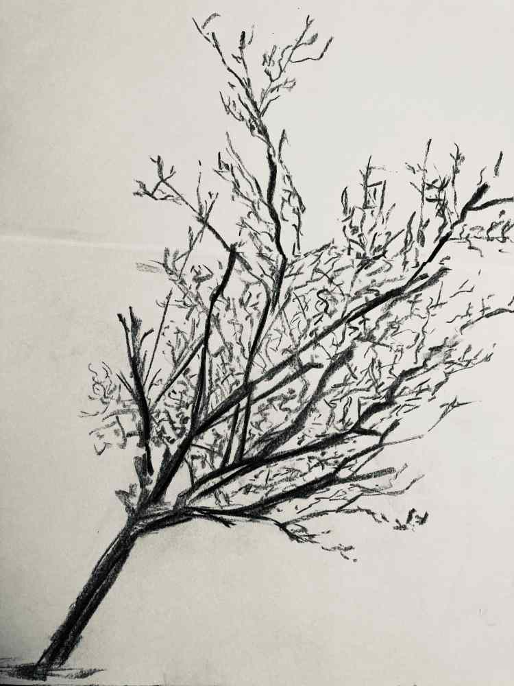 Etude d’un arbre à l’automne, sujet inspirant. Celui-là, je l’ai déjà rencontré, aux Plantounes, en Dordogne. Mais voici des croquis faits à partir de photos de mon amie Géraldine, prises sous deux angles différents.