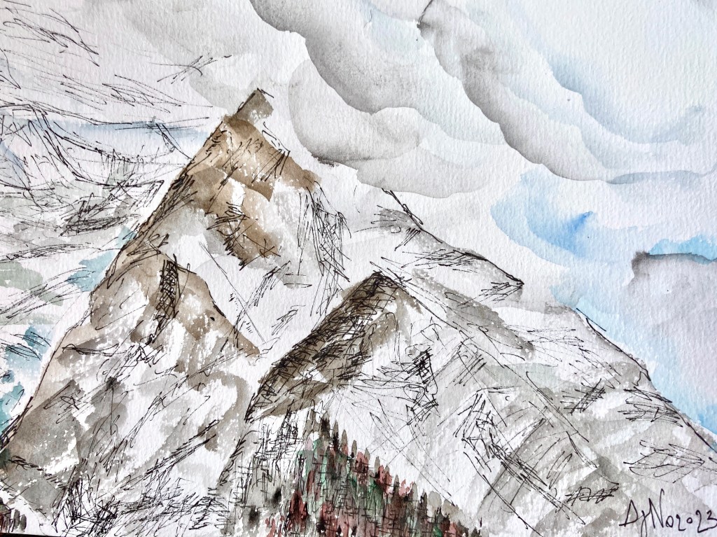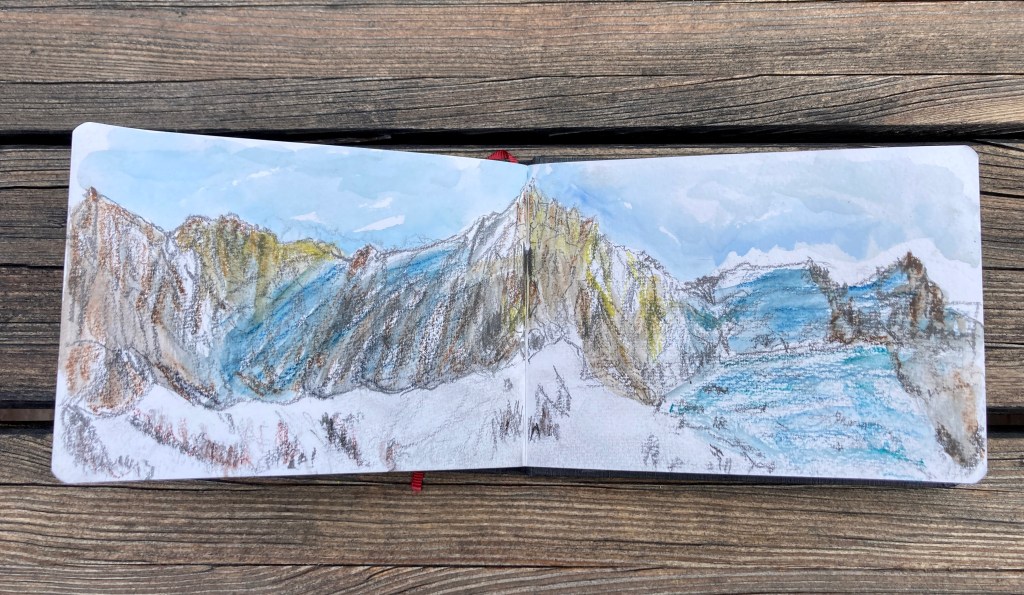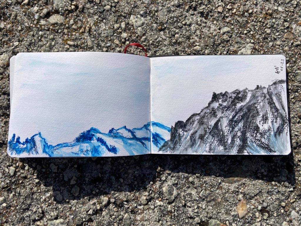 Bravo. Le rendu des montagnes est tellement difficile pour moi. Tu t’en tires parfaitement bien. Tu deviens une dévoreuse de paysage. Belle passion. Je comprends aussi que ce nouveau style de vacances d’hiver doit être très ressoursant.