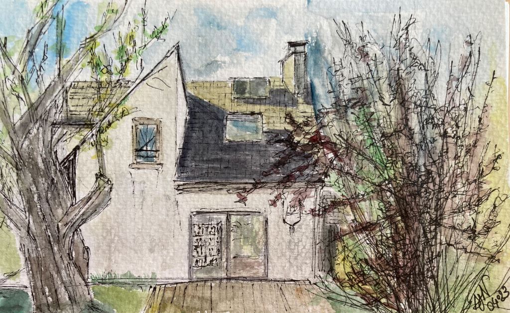 Ma maison, façade Nord-Ouest – 2023 – Aquarelle et encre (pigment liner) – 13 x 20 cm