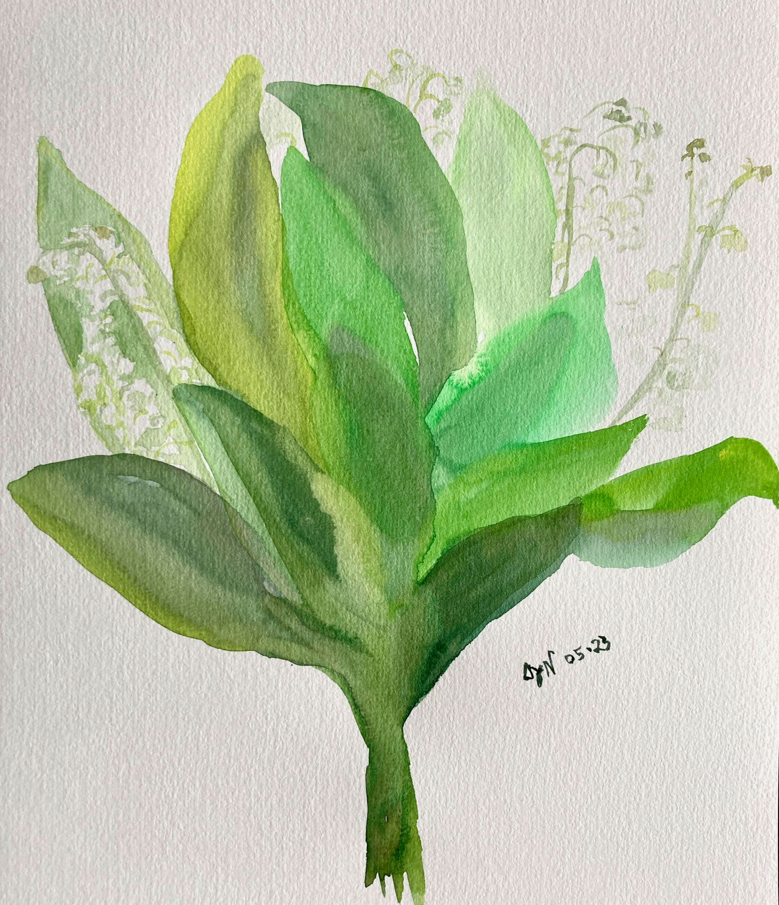 Fille de mai, j’aime le muguet. J’ai peint mon bouquet des vacances. D’abord, d’une façon réaliste (Muguet, bouquet dans son vase), en n’oubliant pas de créer un fond cohérent dans la composition globale de cette nature morte. Je me suis inspirée de la couleur des murs du salon et en ai fait une interprétation libre.Lire la suite « Joli mois de mai »