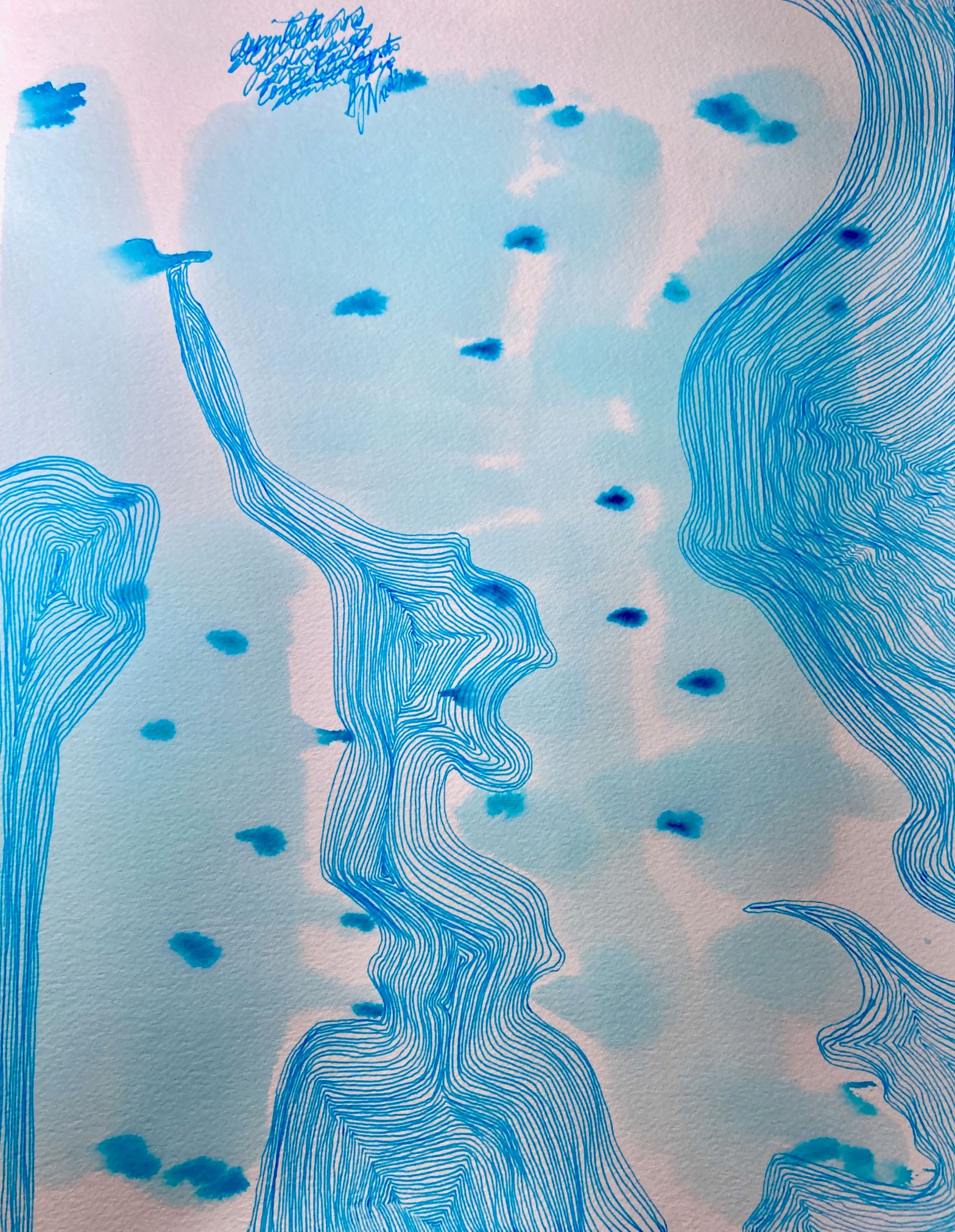 Moment de recherche avec un parti pris d’encre bleue. Je poursuis les formes, le dessin, le hasard, la minutie, et découvre au fur et à mesure ce qui apparaît. Jusqu’où cela va-t-il m’emmener ? Il y a beaucoup d’eau, au sens propre et au sens figuré, dans cette peinture. Les gouttes, que je pensais larmesLire la suite « Vagues à larmes »